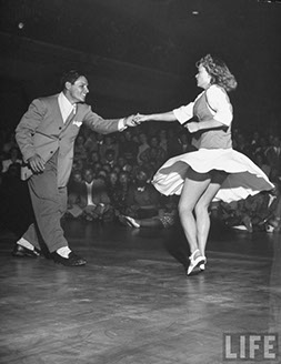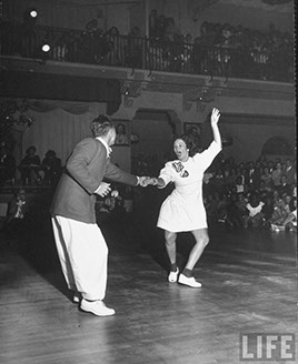 Jitterbug, Lindy, and Swing until the early 1940's. The ballroom dance community was more interested in teaching the foreign dances such as the